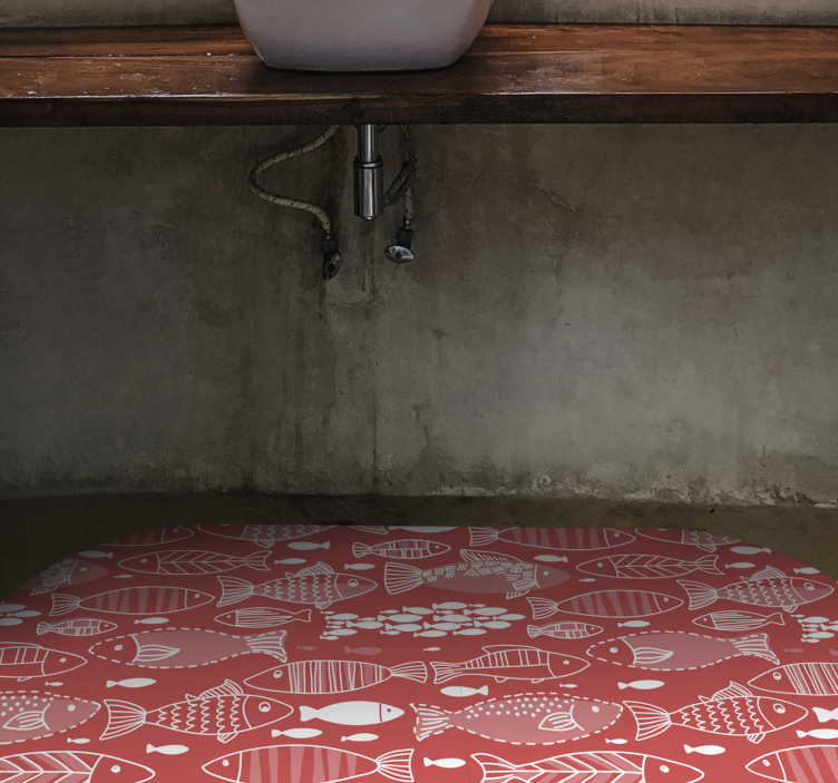 Descubre la alfombra vinílica de animales decorativa de peces, una pieza que transforma cualquier espacio con su diseño estilizado de peces. Este encantador estampado en rojo y blanco evoca la vida marina, creando un ambiente marítimo que encantará a marineros y amantes del océano. ¡Cada rincón de tu hogar se llenará de frescura y alegría!