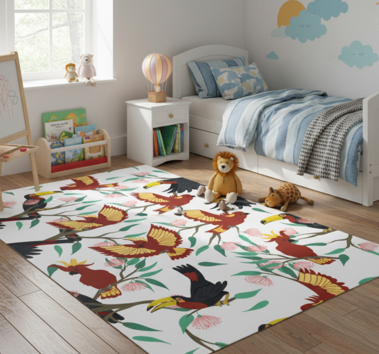 Alfombra vinílica de animales loros y tucanes