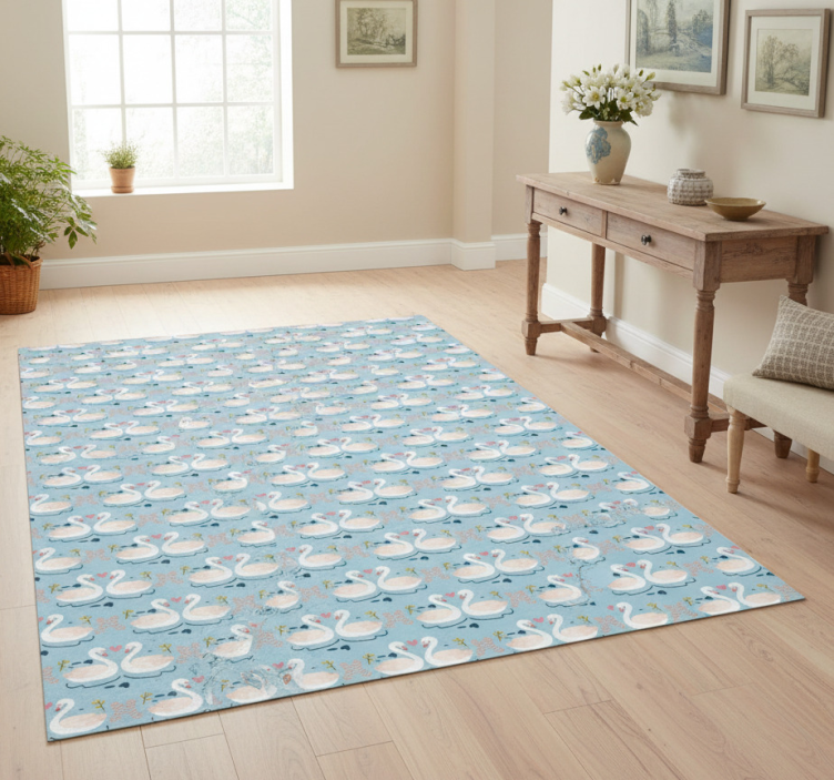 Alfombra vinílica naturaleza cisnes enamorados fondo azul