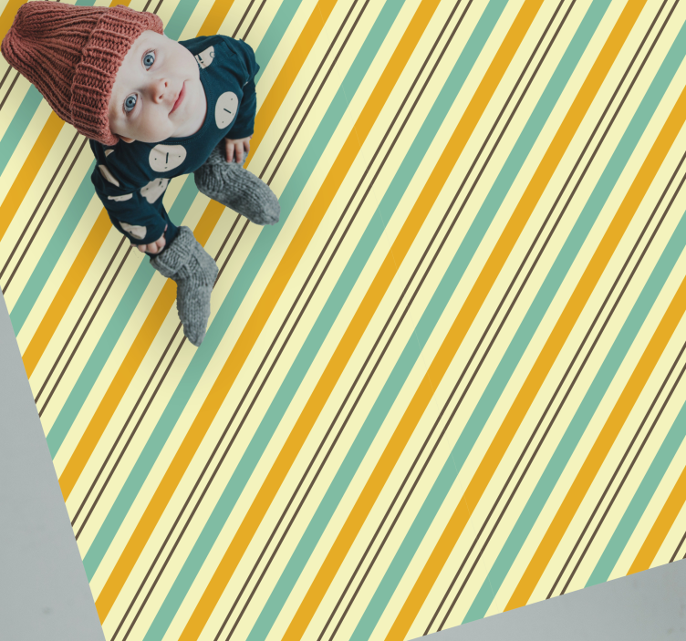 La alfombra vinílica rayas concepto de rayas vivas es una explosión de color y alegría que transforma cualquier espacio. Su diseño presenta un patrón a rayas diagonales en tonos vibrantes de amarillo y azul, creando una atmósfera juguetona y dinámica. Esta alfombra no solo es un elemento decorativo, sino que también aporta una sensación de frescura y vitalidad a tu hogar.