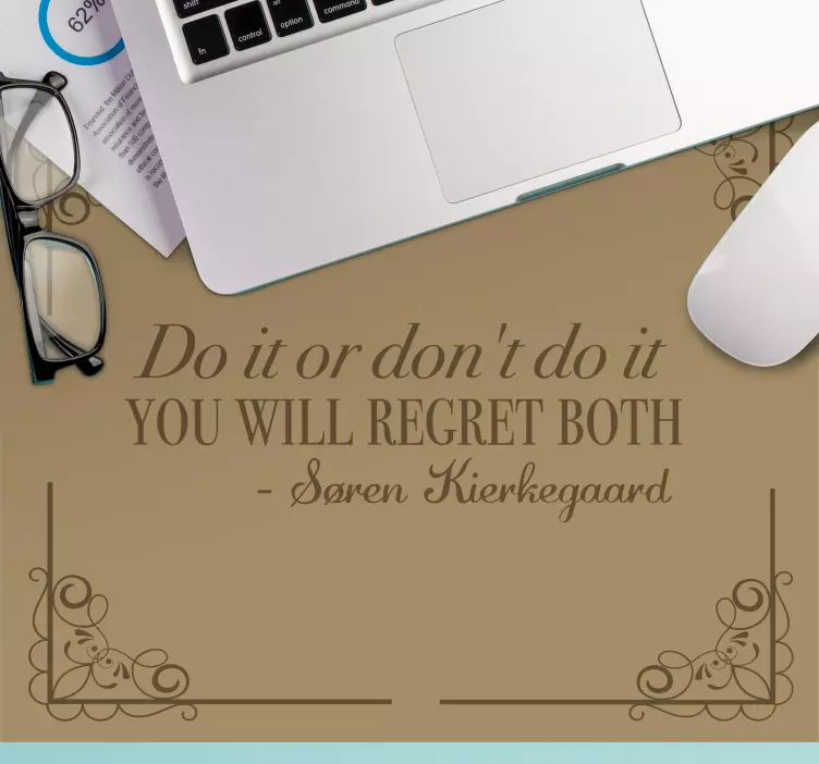¿Buscas inspiración para tu rutina diaria? ¡Tenemos justo lo que necesitas! Esta alfombrilla de ratón está inspirada en la célebre cita de Søren Kierkegaard: 'hazlo o no lo hagas - te arrepentirías de ambos'.