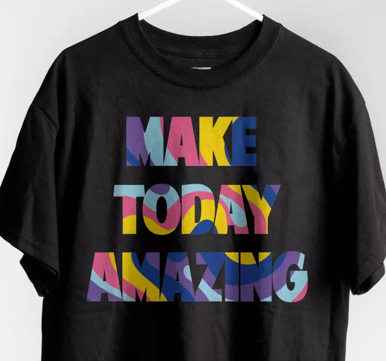 Referencia: T4900Esta pieza vibrante y motivacional presenta la frase 'Make Today Amazing' en una tipografía dinámica y colorida. Las letras en negrita destacan sobre un fondo oscuro, convirtiéndola en una expresión llamativa de positividad e inspiración adecuada para diversas ocasiones.