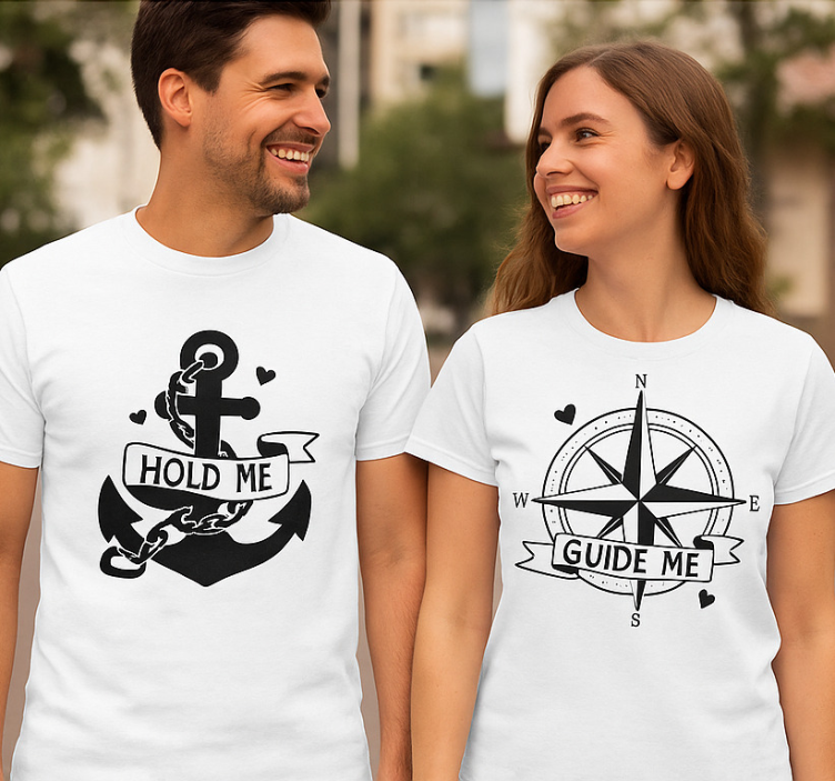 Cuidar tus camisetas parejas abrázame - guíame es sencillo y rápido. Se pueden lavar a máquina a 30 grados, lo que facilita su mantenimiento. Para preservar el diseño, es recomendable planchar del revés o usar una tela barrera. ¡Así tus camisetas se mantendrán como nuevas y listas para tus momentos especiales!