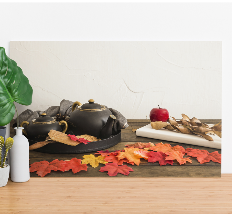 Descubre la belleza de nuestro Cuadro paisajes arreglo de té de otoño, donde un encantador diseño rústico cobra vida. Este cuadro presenta una exquisita composición de teteras elegantes, hojas de otoño vibrantes y una mesa que evoca la calidez de la naturaleza muerta. Los tonos cálidos de las manzanas y las hojas crean una atmósfera acogedora, perfecta para cualquier rincón de tu hogar.