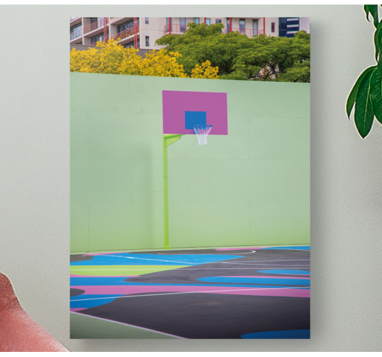 Descubre el vibrante Cuadro deporte cancha de baloncesto colorida, una obra que captura la esencia del baloncesto en un diseño dinámico y visualmente impactante. Con imágenes que evocan la emoción de un partido, este cuadro presenta una cesta, canasta y elementos deportivos que dan vida a cualquier espacio urbano. La fotografía refleja la energía y la pasión por el deporte, convirtiéndolo en un elemento decorativo ideal para los amantes del baloncesto.