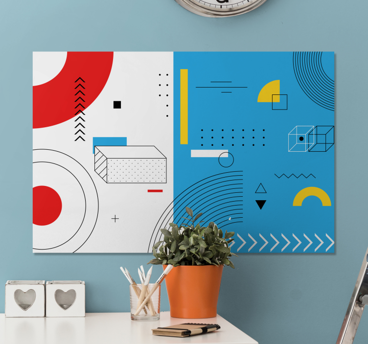 Descubre un mundo de creatividad con nuestro Cuadro figuras geométricas composición de formas, donde el arte abstracto se entrelaza con formas únicas. Este diseño cautivador presenta una armoniosa mezcla de geometría, incluyendo círculos, triángulos, rectángulos, flechas, y topos, todo ello formando un patrón vibrante que transforma cualquier espacio. Con un estampado que invita a la reflexión y a la inspiración, este cuadro es perfecto para quienes buscan agregar un toque distintivo a su hogar.