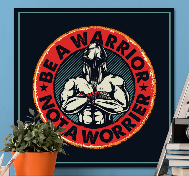 Descubre el poder de la motivación con nuestro Cuadro frase sé un guerrero, una pieza única que combina una inspiradora cita en un diseño tipográfico. Este póster presenta una ilustración que evoca la fuerza y el empoderamiento de un guerrero espartano, recordándonos que no debemos preocuparnos y siempre debemos luchar por nuestros sueños. Su diseño circular y tipografía llamativa lo convierten en el complemento perfecto para cualquier espacio, aportando una dosis de inspiración a tu día a día.