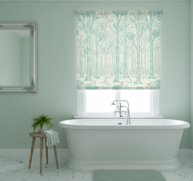 Cortina roller árboles bosque en acuarela menta