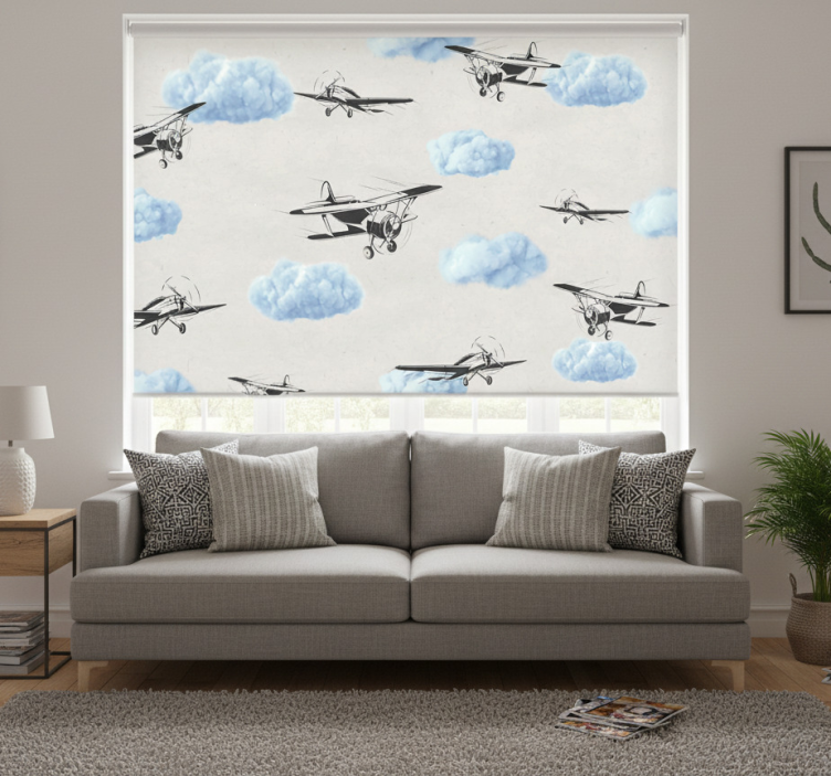 Cortina roller blanca aviones en el cielo