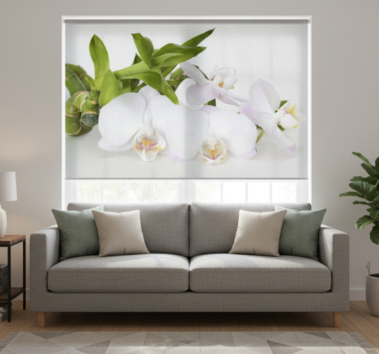 Cortina roller blanca orquídea verde blanca