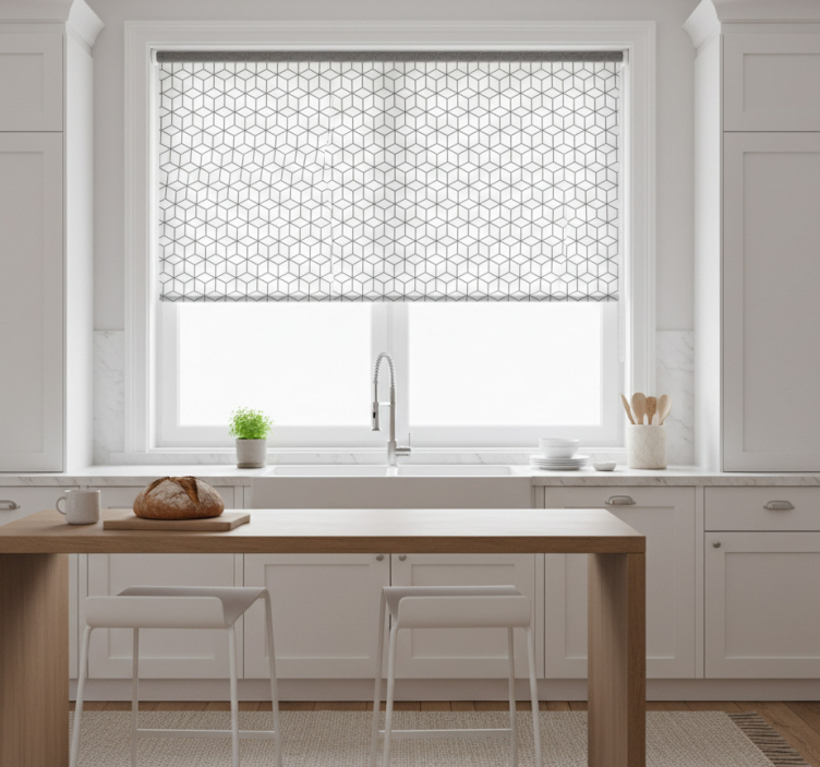 Cortina roller cocina cubos con borde nórdico