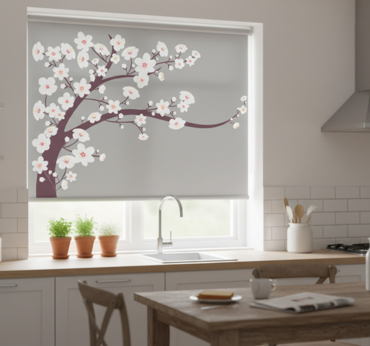 Instalar la Cortina roller cocina cortina roller cocina flores blancas sobre fondo gris es muy sencillo. Con un montaje en 2 clics, podrás disfrutar de la belleza y funcionalidad de esta cortina en minutos. ¡No hay excusas para no transformar tu cocina!