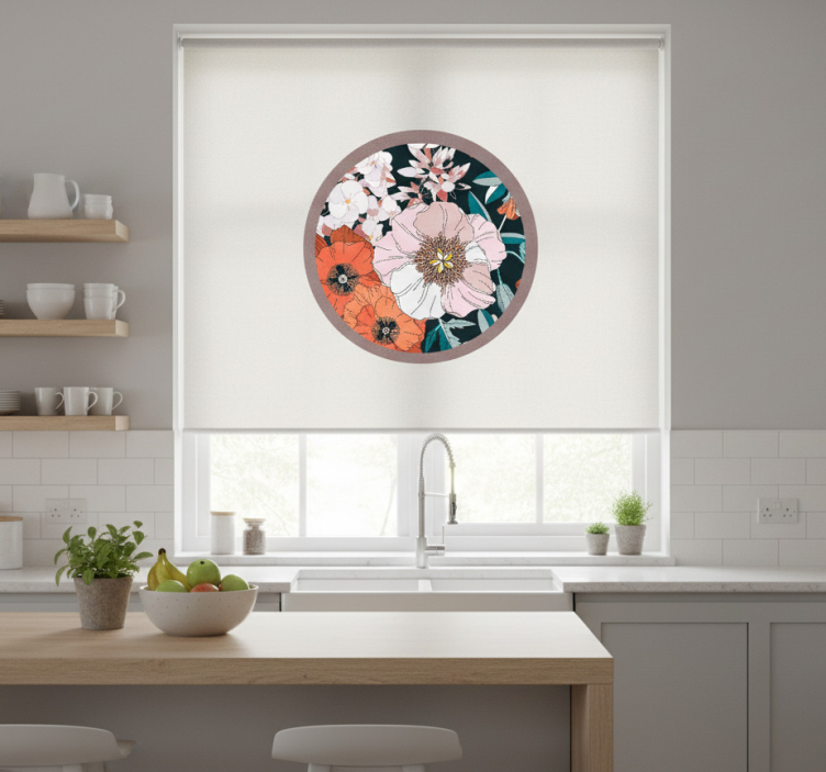 Cortina roller cocina flores de cachorro en círculo