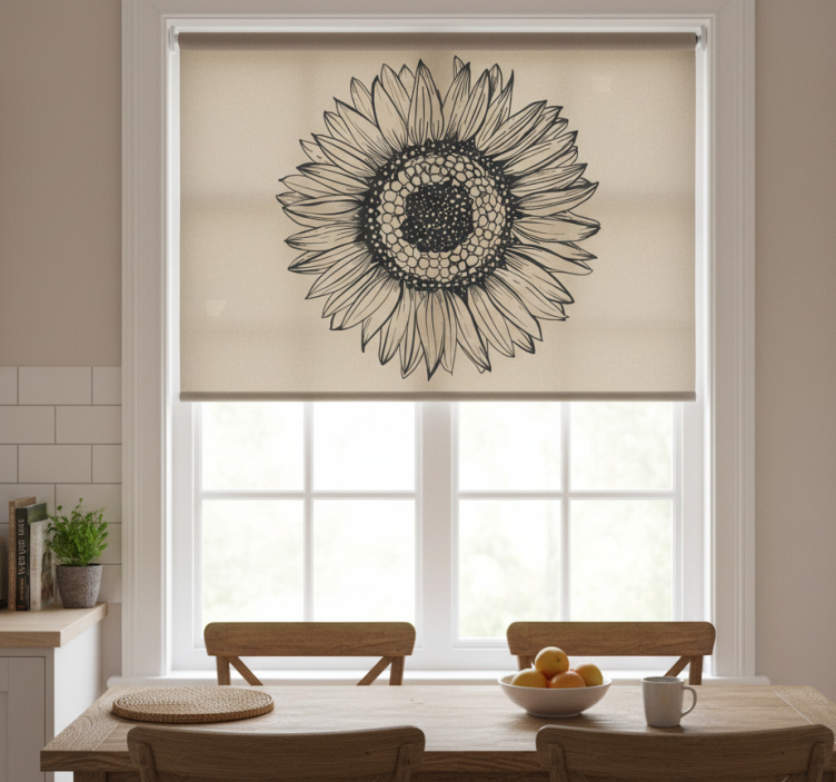 La Cortina roller cocina girasol beige es perfecta para quienes buscan un toque especial en su hogar. Este producto transforma cualquier cocina en un lugar más cálido y acogedor. Imagina disfrutar de un café por la mañana mientras la luz del sol entra suavemente a través de estas cortinas, creando un ambiente ideal para la convivencia. Es la elección perfecta para aquellos que desean dar un giro positivo a su decoración y hacer de su hogar un espacio más inspirador.