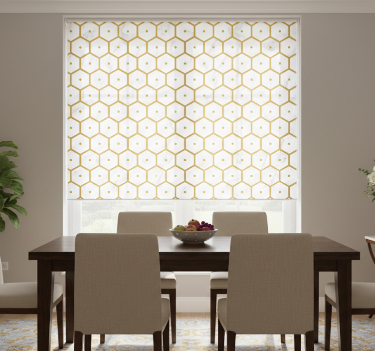 La Cortina roller comedor cortina roller comedor patrón mármol hexagonal dorado es la elección perfecta para quienes buscan transformar su hogar en un refugio de buen gusto. Este diseño no solo embellece tu espacio, sino que también crea una atmósfera acogedora y elegante. Imagina cómo el dorado en el patrón hexagonal ilumina tu comedor, brindando un aire de sofisticación que sorprende a tus invitados y realza tus momentos especiales. ¡Es hora de dejar que tu decoración hable de ti!