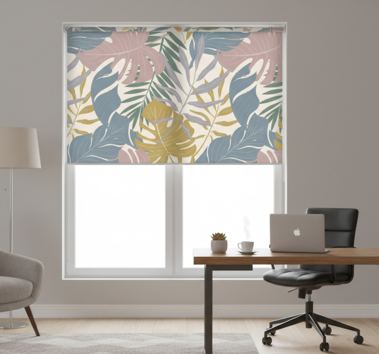 Cortina roller despacho detalles de follaje tropical