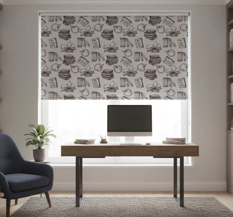 Cortina roller despacho elementos de estudio vintage