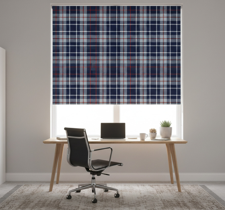 Cortina roller despacho tartán azul y rojo