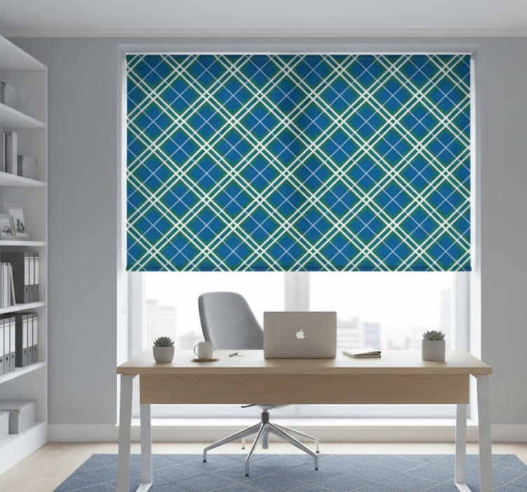 Cortina roller despacho tartán escocés azul y verde