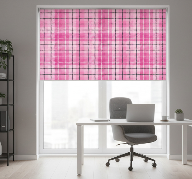 Cortina roller despacho tartán rosa y negro
