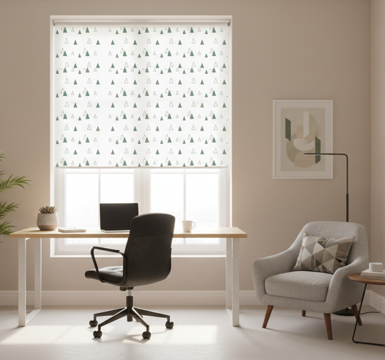 Cortina roller despacho triángulos colores naturales