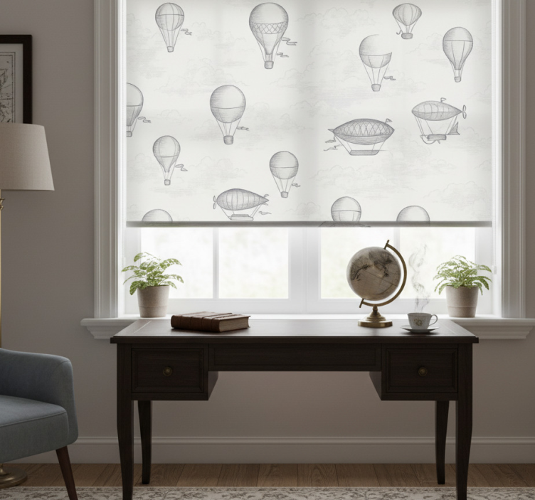 Cortina roller gris cielos y dirigibles vintage