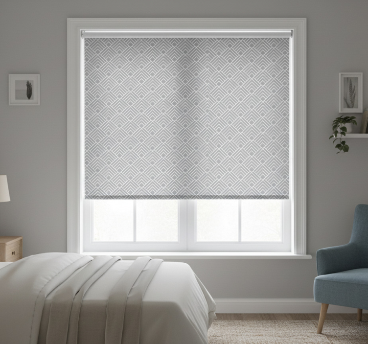Cortina roller gris líneas gris claro en zig zag