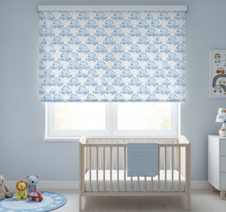 Cortina roller infantil líneas de coches azules