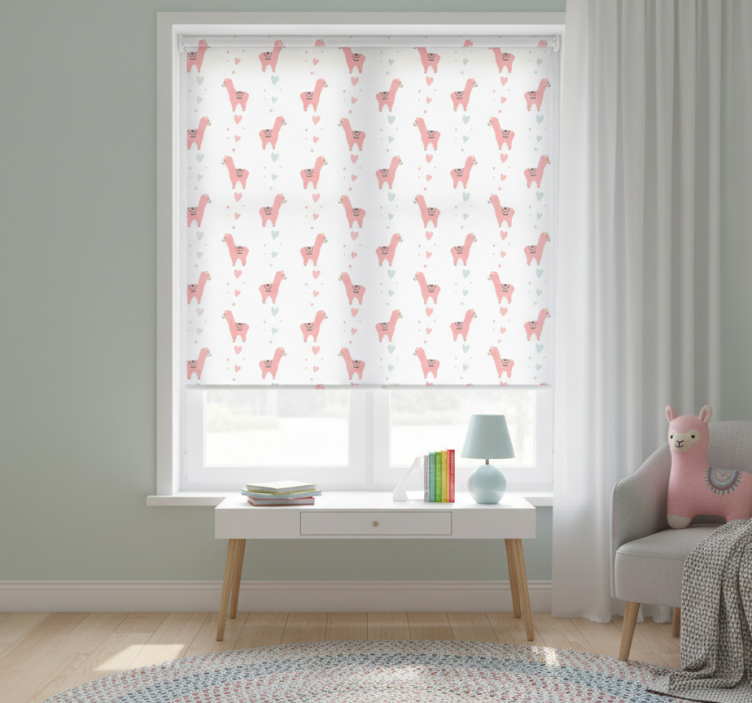 Cortina roller infantil patrón de lama rosa