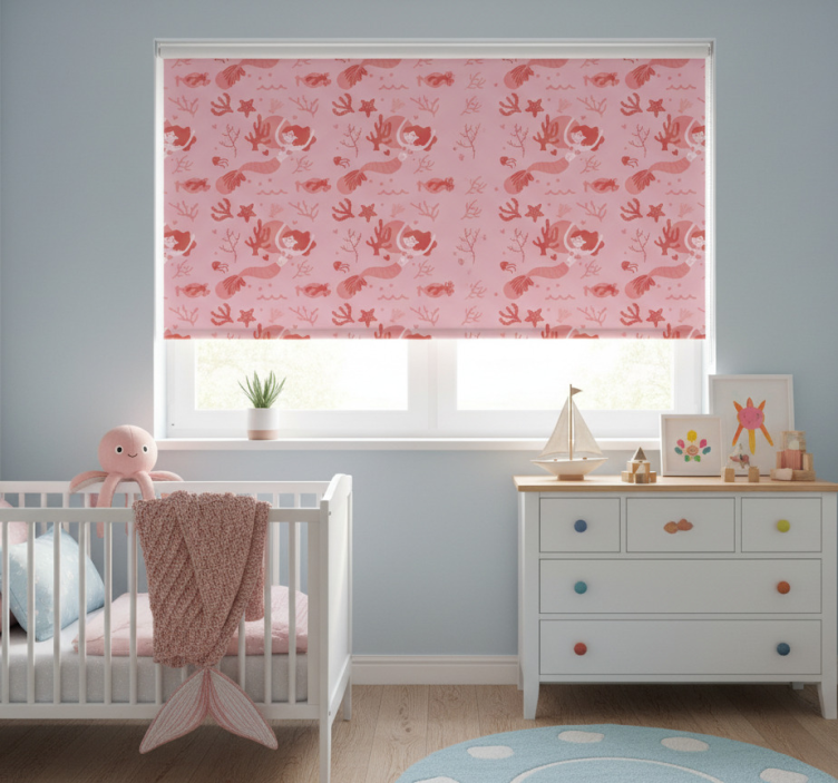 Cortina roller infantil sirena rosa saludando y sonriendo