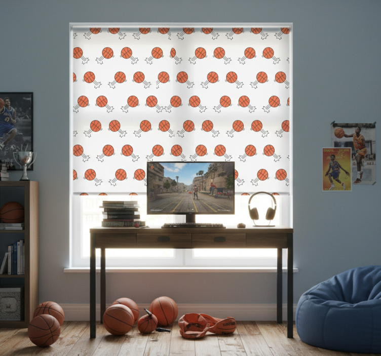 Cortina roller juvenil fondo de balones dibujados