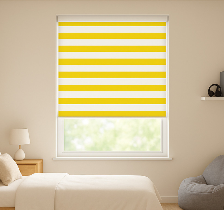 La Cortina roller juvenil rayas amarillas y blancas es mucho más que un simple accesorio; es una declaración de estilo. Su diseño alegre y contemporáneo transforma cualquier habitación en un lugar invitante y lleno de energía. Al integrarla en tu hogar, no solo proteges tus espacios de la luz solar directa, sino que también brindas un ambiente de privacidad y confort. ¡Anímate a darle vida a tus espacios con esta cortina tan especial!