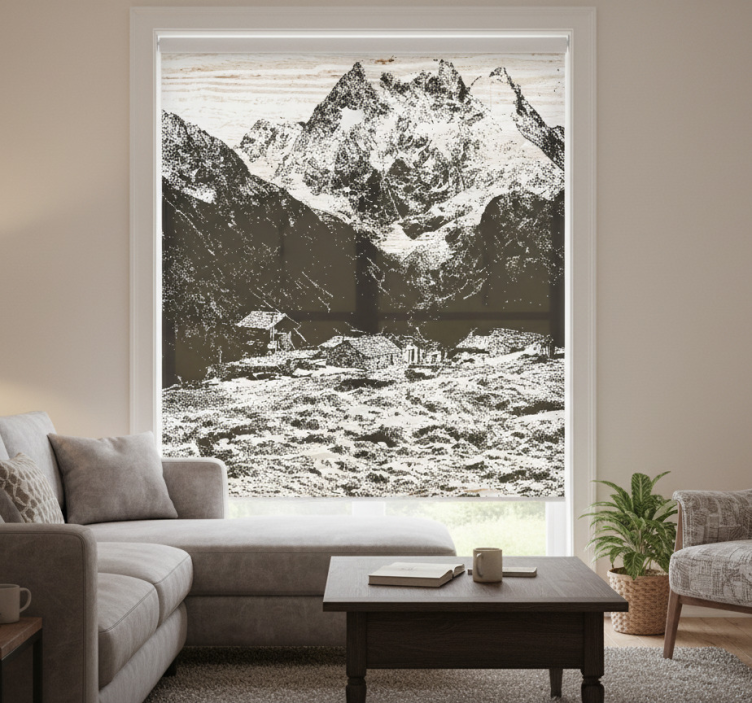 Cortina roller living comedor montañas suizas