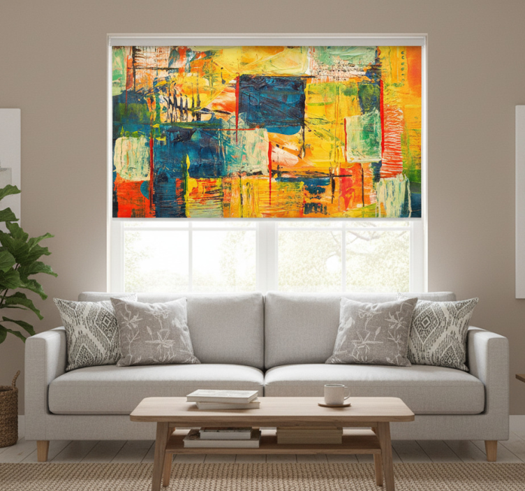 Cortina roller living comedor mosaico colorido