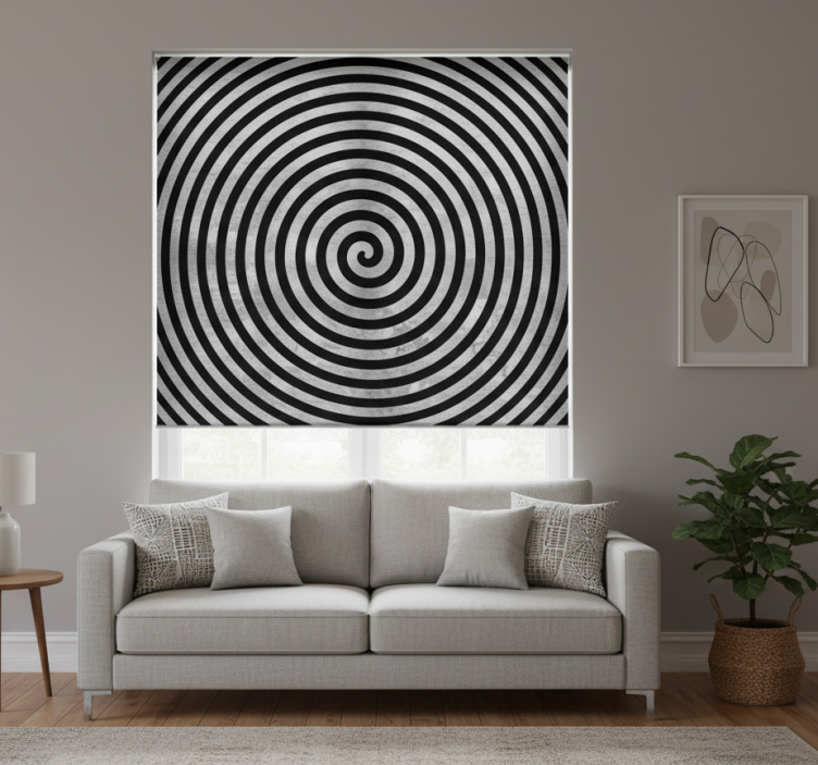 Cortina roller living comedor remolino blanco y negro