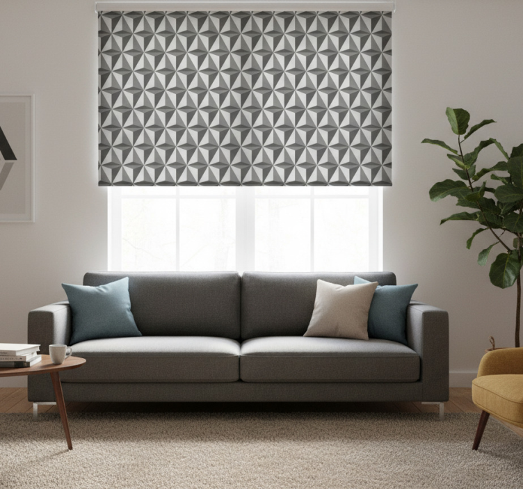Referencia: E7688Descubre la elegancia y modernidad que ofrece nuestra Cortina roller moderno azulejos triangulares oscuros. Con un diseño visualmente impactante, esta cortina presenta un patrón de azulejos triangulares en tonos oscuros que aportan un toque contemporáneo a cualquier espacio. Su estilo único combina funcionalidad y estética, convirtiéndola en la opción perfecta para realzar la decoración de tu hogar.