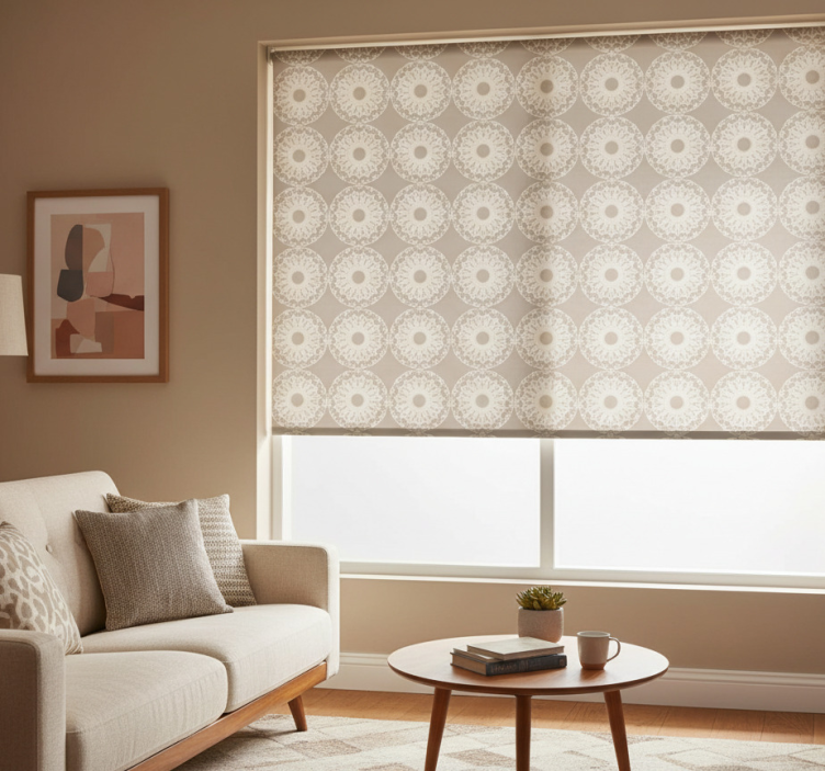 Cortina roller moderno círculos beige eclécticos