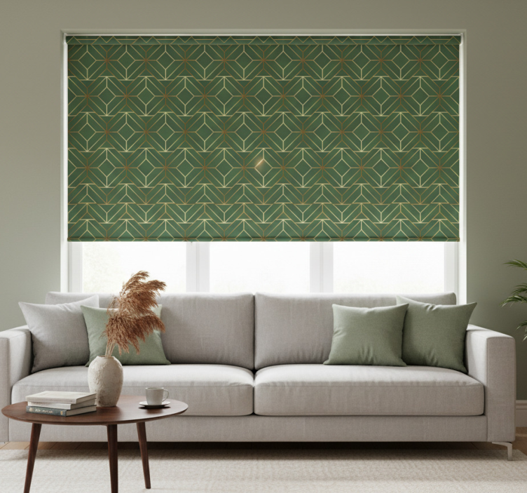 Cortina roller moderno cuadrados verdes metálicos con dorado