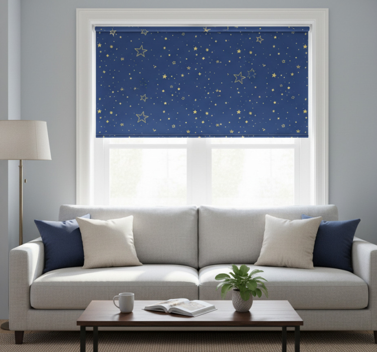 Cortina roller moderno estrellas doradas fondo azul
