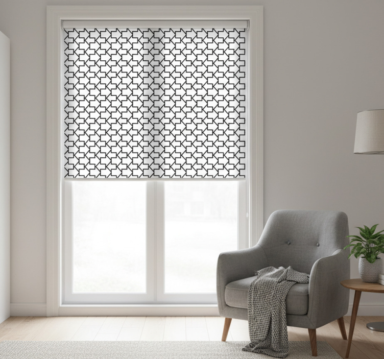 Cortina roller moderno flechas geométricas con líneas negras