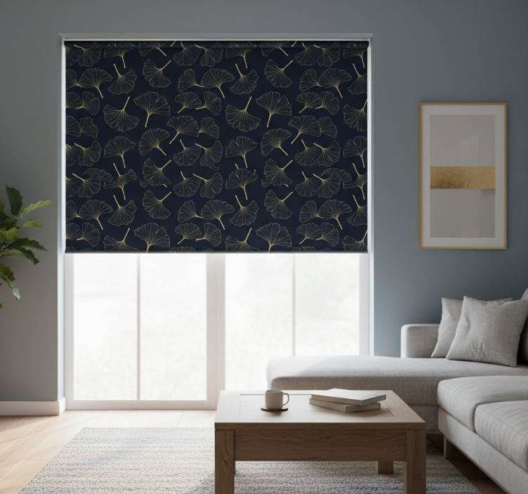 Cortina roller moderno hojas de ginkgo doradas 3d