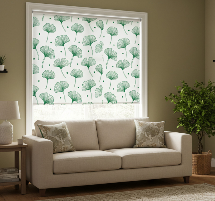 Cortina roller moderno hojas grandes de ginkgo