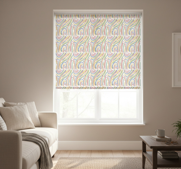 Cortina roller moderno líneas coloridas sobre fondo blanco