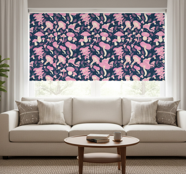 Cortina roller moderno patrón de hongos rosa
