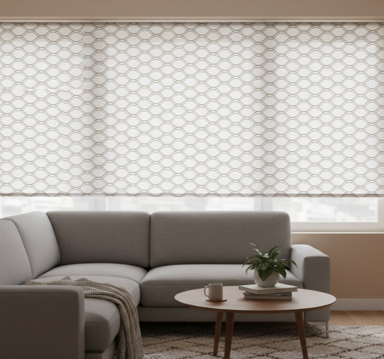 Cortina roller moderno patrón geométrico marrón ondulado