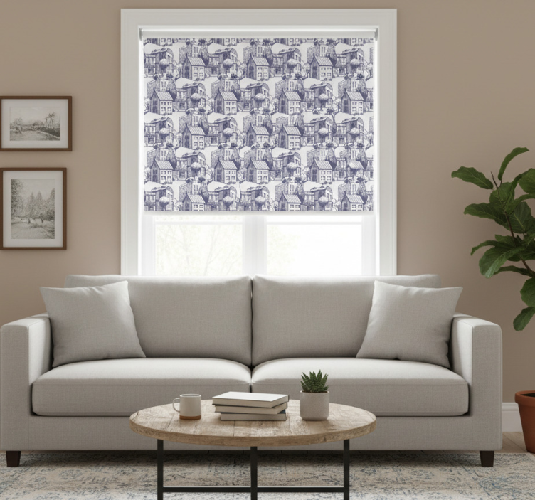 Cortina roller moderno patrón vintage ciudad