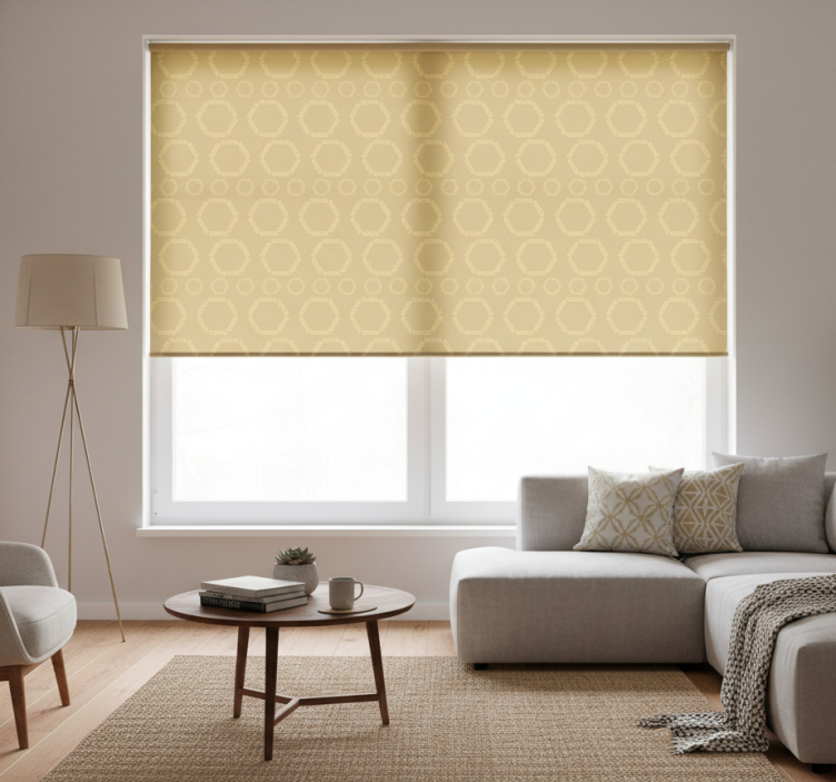 Referencia: E7681Descubre la elegancia de la Cortina roller moderno patrones hexagonales dorados, un diseño que combina la sofisticación de los patrones hexagonales en tonos dorados con la funcionalidad que necesitas para tu hogar. Este estor no solo embellece tus espacios, sino que también te ofrece la posibilidad de regular la luz y la privacidad de manera efectiva. ¡Un toque de modernidad que transformará cualquier habitación!