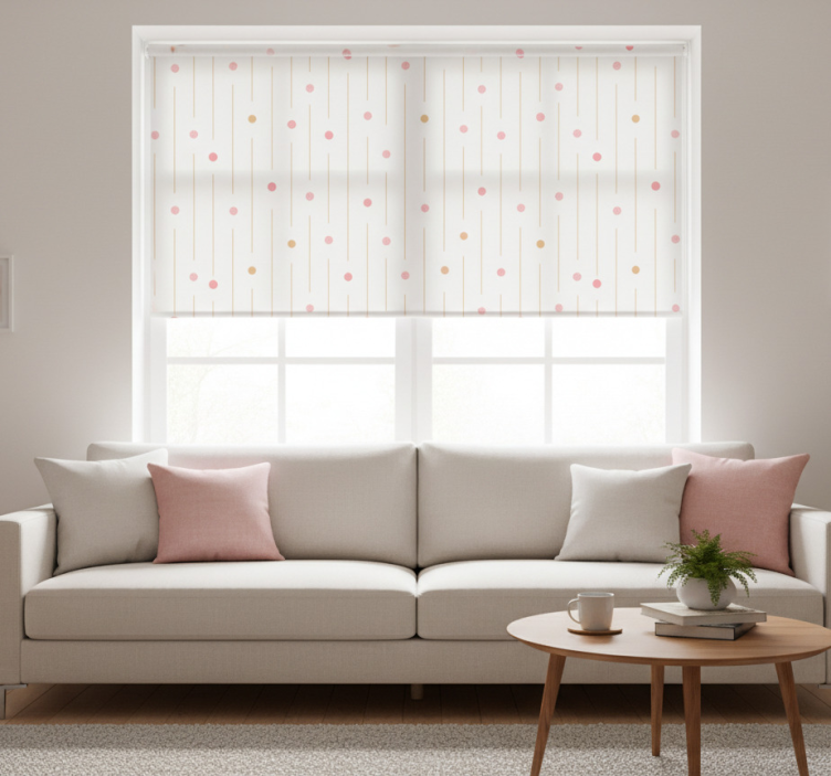 La Cortina roller moderno cortina roller moderno puntos coloridos con líneas es la elección perfecta para aquellos que buscan darle un giro a la decoración de su hogar. No solo es un elemento práctico que regula la luz y proporciona privacidad, sino que su diseño único y alegre hará que cada habitación luzca más vibrante y acogedora. ¡Incorpora este toque de color y modernidad a tu espacio y observa cómo se transforma!