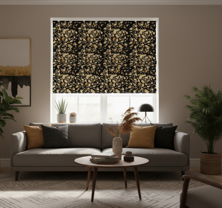 Referencia: E7685Descubre la elegancia y modernidad en tu hogar con la Cortina roller moderno terrazzo estilo negro oro. Este diseño exclusivo presenta un hermoso patrón de terrazzo en tonos negros y dorados que aportará un toque sofisticado y contemporáneo a cualquier habitación. Su acabado de alta calidad no solo es visualmente atractivo, sino que también está pensado para ofrecer funcionalidad y durabilidad, convirtiéndolo en la elección perfecta para quienes buscan un estilo único y refinado.