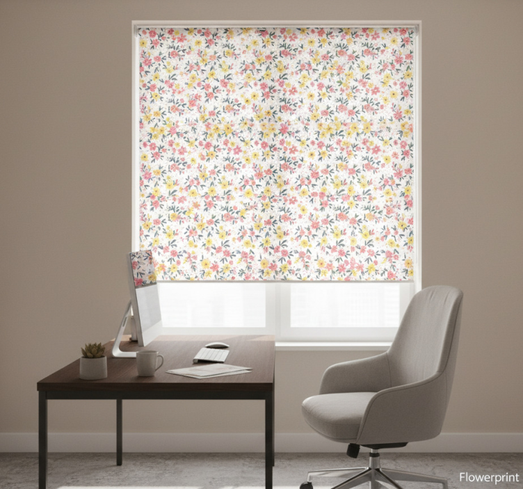 Cortina roller oficina flowerprint 'ifuru' blanco